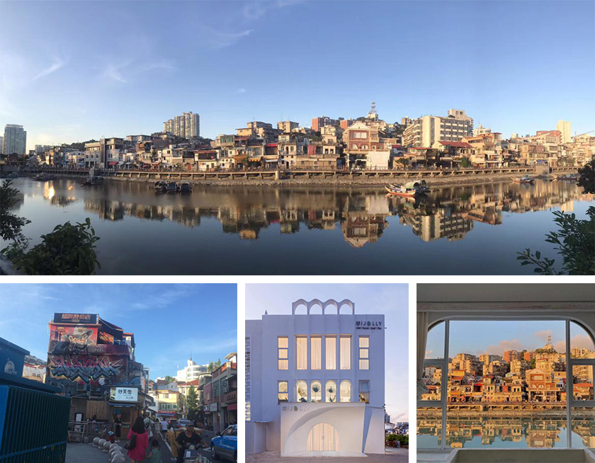 沙坡尾經(jīng)過(guò)幾年的改造,呈現出新的面貌。內港灣的清淤使水質(zhì)以及水體景觀(guān)得到較大改善。漁港兩旁新入駐了不少民宿、文創(chuàng )小店、咖啡吧、休閑吧等。其中由舊玻璃廠(chǎng)改造而成的白色城堡Oneday Jolly很是吸睛。逛累了,我們在這里拍照、喝茶,看著(zhù)窗外的小漁船休閑地蕩漾著(zhù),靜靜感受老廈門(mén)的新面貌、慢生活。
